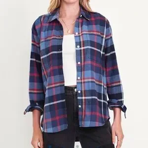 Plaid Button-Up Shirt oversized boyfriend fit