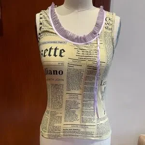John Galliano RARE Vintage Newspaper Print Tank top Y2K