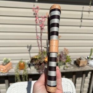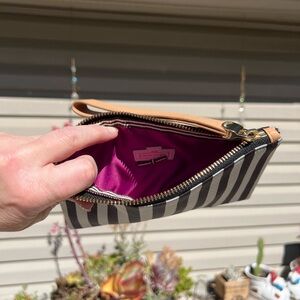 Matching Wallet: A stylish long wallet or multi-tasker wallet with the same iconic stripes and tan leather accents, perfectly complementing the handbag.
