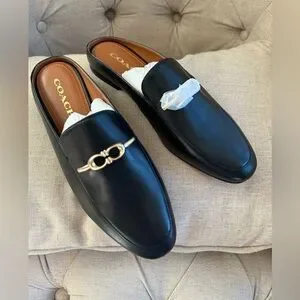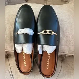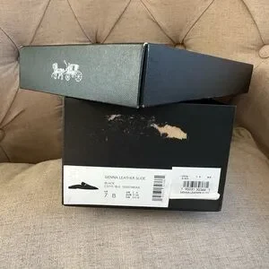 Coach black leather/gold buckle Sienna Leather Slide, size 7
