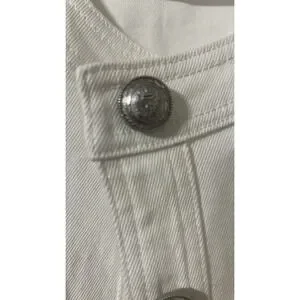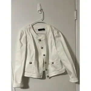 A crisp classic, this white stretch denim jacket ditches the collar for a more laid-back look. From Susan Graver.