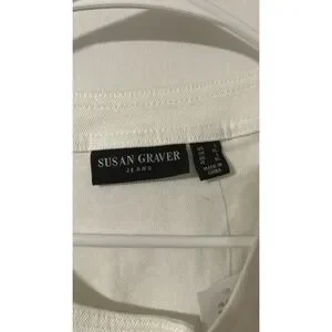 Susan Graver Stretch Denim Collarless Jacket w/Patch Pockets - Women's L - White