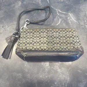 Coach Black Signature Canvas & Leather Wristlet with Tassel – Gently Used (B1)