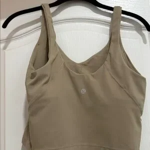 Stylish tan tank top by Lululemon. Ideal for casual wear. Comfortable and chic.