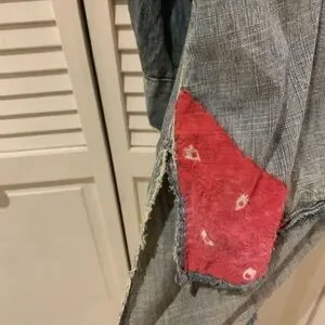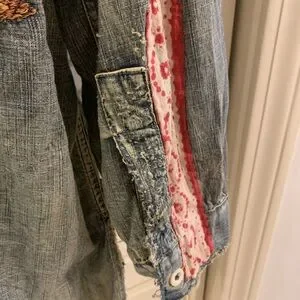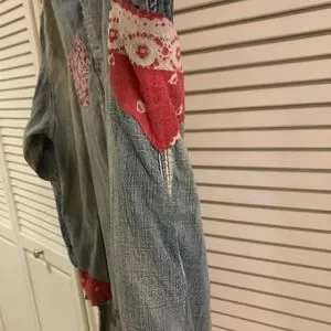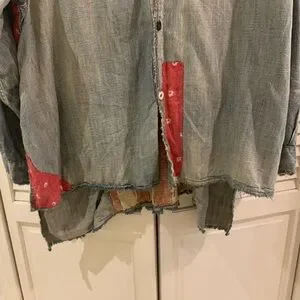 RARE cotton denim with embroidered American Indian on an Adison workshirt. So many wonderful details- mixed buttons, patches with show stopping back. Oversized, light weight - just fantastic!!!