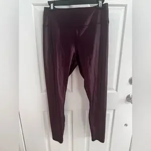 Glossy maroon leggings. Ideal for fitness or casual outings.