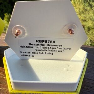 BP Bomb Party RBP5754 Beautiful Dreamer Earrings Rose Gold Aqua Blue Quartz NEW