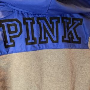 PINK Victoria's Secret Women Sweatshirt XS Gray Hoodie 1/2 Zip Logo READ