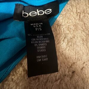 The turquoise logo baby tank top has cutout rips in the side that makes the top extra cute