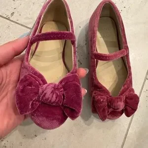 Janie and Jack Toddler Girl’s Velvet Magenta Bow Ballet Slipper Flat Shoes