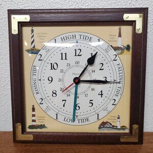 The Nautical Clock by Hanover is a stylish and functional addition to any home decor. This battery-powered quartz wall clock features a round wood frame with a white color and nautical theme, perfect for adult's living spaces. With a 12-hour display and analog display type, this hanging wall clock is an original piece that adds a touch of maritime charm to any room in the 21st century. The 13.5" x 13.5" size makes it a statement piece without being overwhelming, ideal for those who appreciate nautical style and design. Excellen condition. The wood frame does have a couple of minor scratches. Works great.