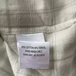 This brand new with tags UNTUCKit button down sleeveless shirt is classic. Cuffed, cap sleeves. Two chest pockets. Grey and white plaid design. Collared. V-neck cut (doesn't button all the way up to the neck). Small vents at sides. Made of 60% Cotton & 40% Tencel. Hand wash only. This blouse is SO soft!! Great for summer - staple that can be dressed up or down. Could also be great for other seasons - layered under cardigans or jackets. This is the jVillefranche style in Size 4.