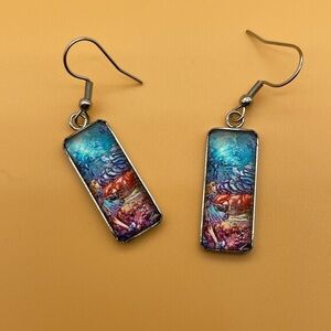 Alice in Wonderland Caterpillar on Mushroom Dangle Earrings, NWOT, Bundle Item