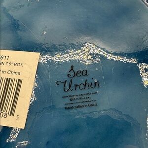 This is a large ceramic sea urchin with lid. It can be a trinket box or just a beautiful beachy accent piece. It is 7.5 x 7.5 x 5“. It is made by blue sky clay works. Made in China. The colors are brilliant and the finish is a shiny glaze. It is gorgeous. No chips or cracks.