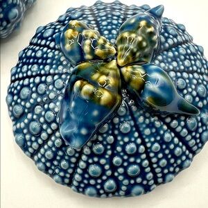 Gorgeous Ceramic Sea Urchin with lid. 7.5” x 7.5”