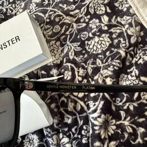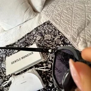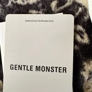 Elegant white leather pouch with Gentle Monster branding. Includes authenticity card and cleaning cloth.