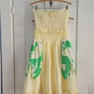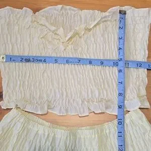 Cute Vintage Smocked Shirred Full Petal Skirt Set with Tube Top Eyelet Trim