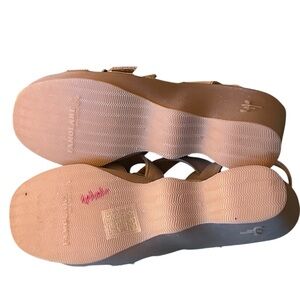 Famolare Wedge Sandals Strappy Shoes Tan Leather Wavy Platform Size 10