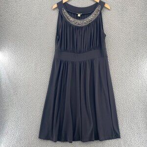 Haani Dress Women Extra Large Gray Bling Neckline Jersey Shirred Sleeveless Knee