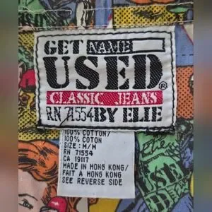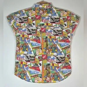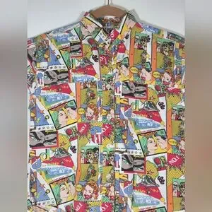 VINTAGE GET USED BY ELIE COMIC BUTTON DOWN SHIRT.