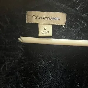 Calvin Klein Jeans Navy Blue Fuzzy Cardigan Size Small In excellent condition. Comes from a smoke and pet free home