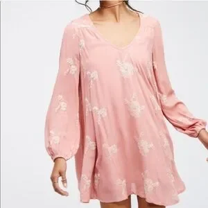 Altar'd State Embroidered Floral Dress, Size Small in Pink