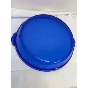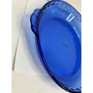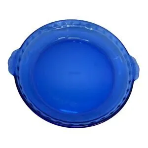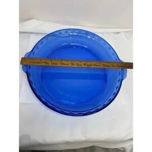 The Vintage Pyrex Original Cobalt Blue Fluted Pie Baking Plate 229 is a 9.5" round glass dish made in the United States in 2003. This mid-century modern pie baking plate features a fluted edge and comes in its original vintage form. The cobalt blue color adds a retro touch to your kitchen decor, while the unboxed packaging makes it easy to display or store. This PYREX baking plate is both functional and stylish, perfect for baking your favorite pies in a unique and eye-catching dish.