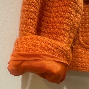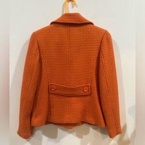 Chic orange blazer by Rafaella. Features a textured design with button closure. Ideal for a stylish, bold look. Gently used condition, size 6. Questions? Just ask! 🧡