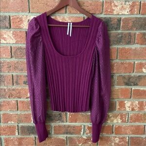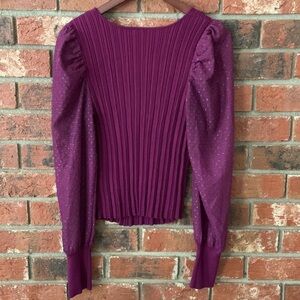 Anthropologie Elegant Purple Puff Sparkle Sleeve Women's Top