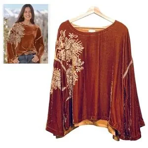 Sundance Rust Velvet Tunic with Cream Embroidery