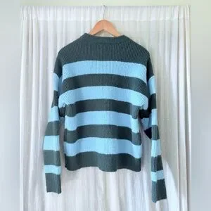 Embrace warmth and style with this cozy striped sweater in blue and green. Perfect for casual outings.