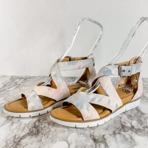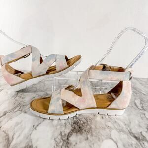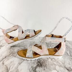 Sofft Mirabelle Sandal Womens Size 9 Low Wedge Suede White Pastel Strappy Comfy