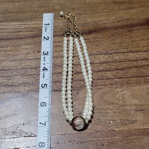 This elegant pearl necklace features a classic cameo pendant, perfect for adding a touch of vintage charm to any outfit. The gold accents complement the cream pearls beautifully.