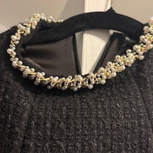 NADINE MERABI Black Tweed Dress with Pearl Details