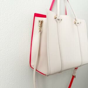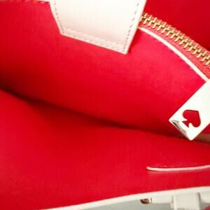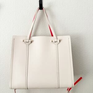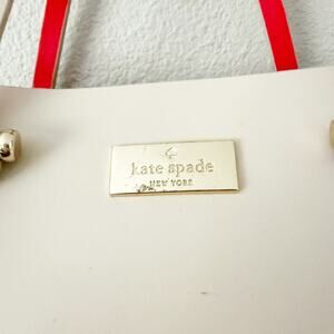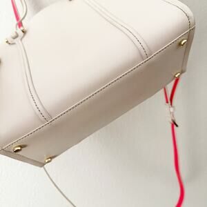 Adorable and classic handbag from KATE SPADE! Used twice, in beautiful condition. Main color is a beige/nude with bright coral/orange/pink interior. Two handles with removable long strap. A few minor scuffs. Gold metal hardware.