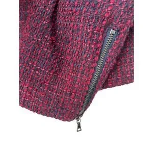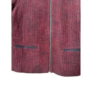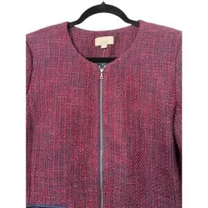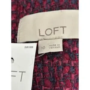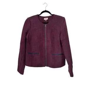 LOFT Blazer Womens Size 10 Burgundy Blue Wool Tweed Collarless Full Zip Jacket
