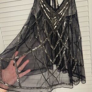 Kimchi Blue Black and Silver Sequin Beaded Tank Top
