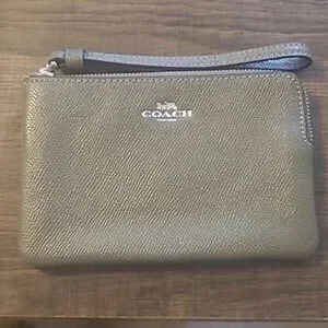 Elegant and versatile, this Coach wristlet in green is perfect for any occasion. Its sleek design and premium quality make it a must-have accessory.