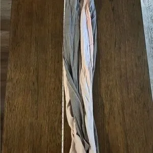 Stylish gray and pink scarf with unfinished hem/slight fringe. Tie in multiple different ways or wear as a shawl. Perfect for any season.