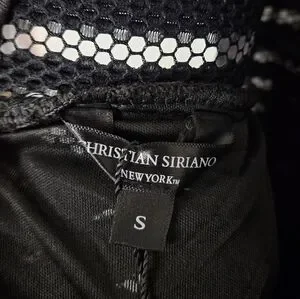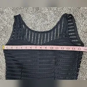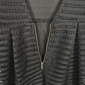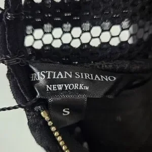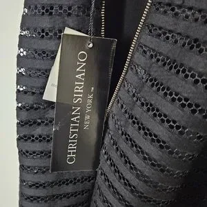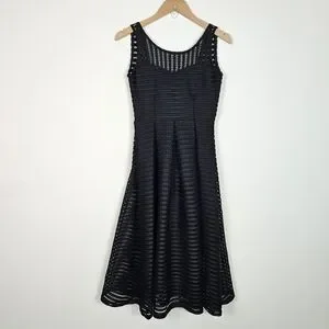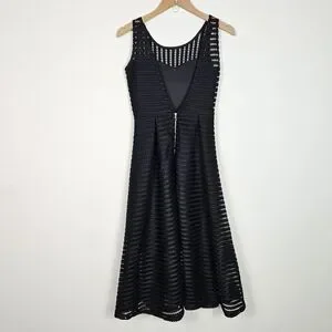 Christian Siriano Black Mesh Stripe Cocktail Dress Nwt Womens Size S Midi