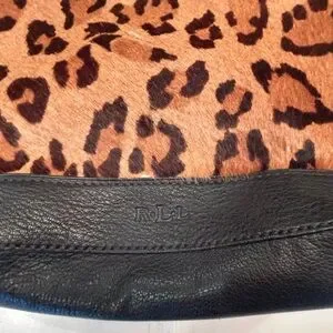 Lauren Ralph Lauren Leopard Print and Black leather Hobo shoulder Bag purse