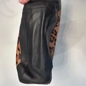 Stylish hobo bag with leopard print and black leather accents. Perfect for everyday use.