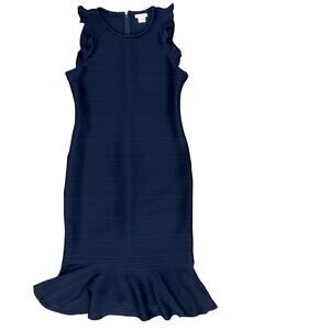 Shoshanna Navy Blue Ruffle Hem Sleeveless Ribbed Sheath Midi Dress size 6