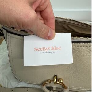 NWT See by Chloé Small Joan Leather Shoulder Bag Top Handle Cement Beige