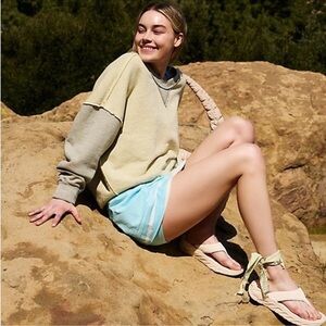NWOT FP Movement Womens Start Up Pullover Oversized Relaxed Fit Yellow Gray