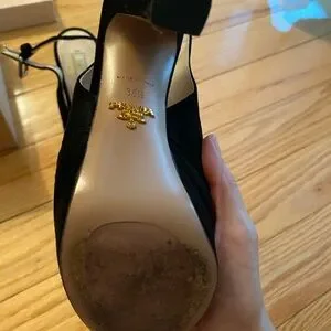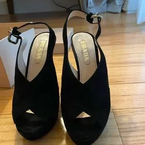 Chic Prada heels with a sophisticated cross-strap design. Ideal for elevating any outfit.
