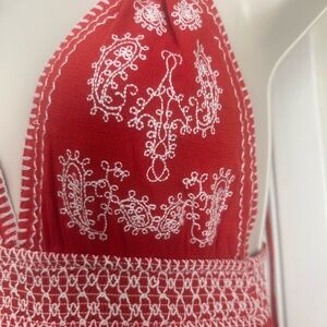 This dress is FIRE! 🔥 perfect for a steamy fall day or evening! Adjustable straps . The color is between red and orange . Maybe a tomato red ?! I love it but it’s not my color . I thought it was red . Tags still attached. Never worn .