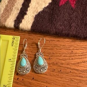 NWOT 925 Silver & Genuine Turquoise Teardrop Earrings Never Worn 1.5”