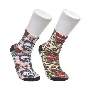 Pack Includes: 2 pairs with vibrant 360° digital prints (pink skull floral & leopard rose designs)