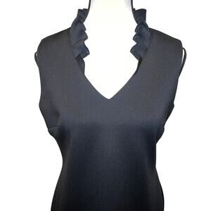 Calvin Klein Ruffle V -Neck Fitted Sheath Dress Cocktail Black Tie Size 6